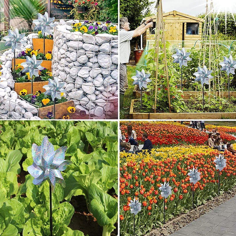 - IMMEDIATELY VISIBLE EFFECT: See results fast! Birds instinctively flee from the reflective pinwheel bird deterrent's surfaces. Protect your plants, gardens, fruit trees, veggies, and ponds from damage immediately with this effective bird scarer spinner.