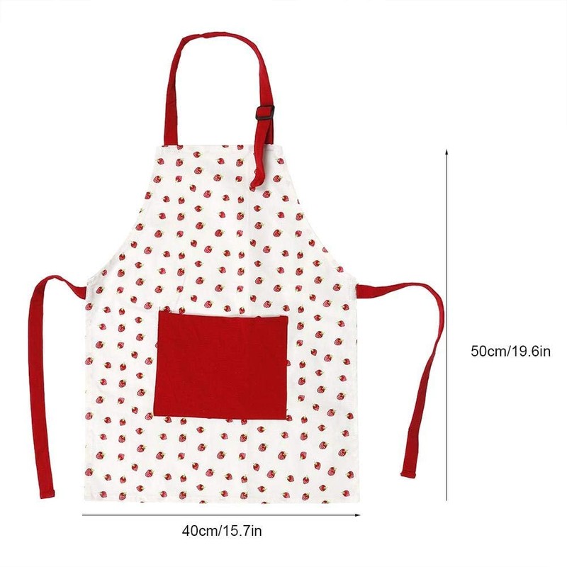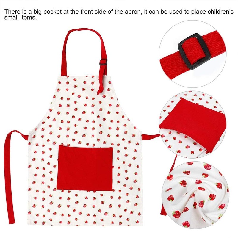 HERCHR Kids Girls Apron with Pocket, Red Strawberry Children Chef Apron for Painting Cooking Baking Adjustable Neck Straps