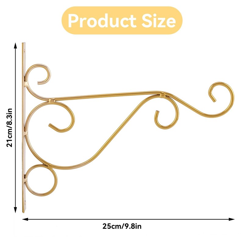HERCHR Plant Hanger Wall Hooks, Hanging Bracket, Plant Hooks Hanging Basket Brackets, Wall Planters Iron Plant Bracket, Decorative Wall Mount Planter Hooks for Hanging Lantern Bird Feeder Fence, Gold