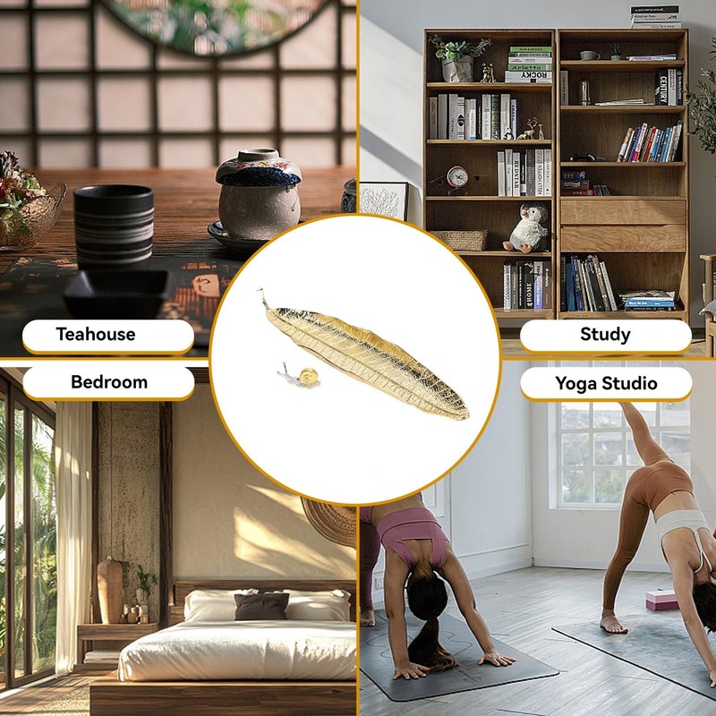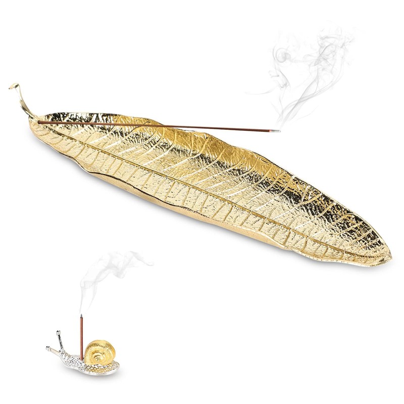 • DISEÑO CON FORMA DE HOJA Y CARACOL: Hay 2 soportes de incienso, está diseñado con forma de hoja y el otro con forma de caracol, ambos se ven hermosos y antiguos, vale la pena coleccionarlos