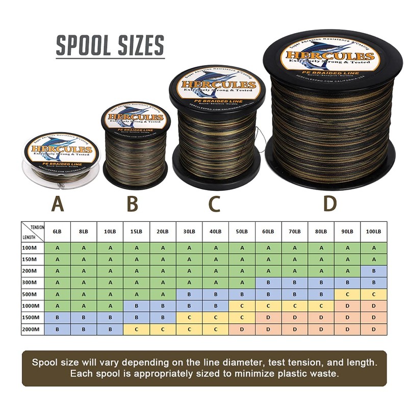Hercules fishing line braided is made from UHMWPE, the world's strongest fiber wire, and coated with special technology, resulting in superior knot strength and abrasion resistance. Near-zero stretch gives you the sensitivity to feel the lightest bite from the rod bait. When it is combined with fishing rod, fishing reel, fishing hooks, fishing lures, fishing sets, and other fishing accessories, you can fish in the sea, lake, pond, heavy grass, cover or mats, with rigid strength and brute force to cut through weeds or vegetation.