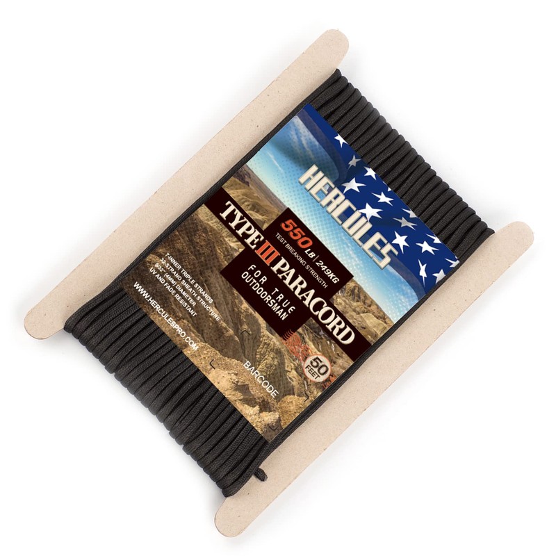 HERCULES Paracord Guy Rope, Camping Rope, Tent Rope, Load Capacity 550.1 lbs (250 kg), 7 Cores, Black, 33.1 ft (15 m)