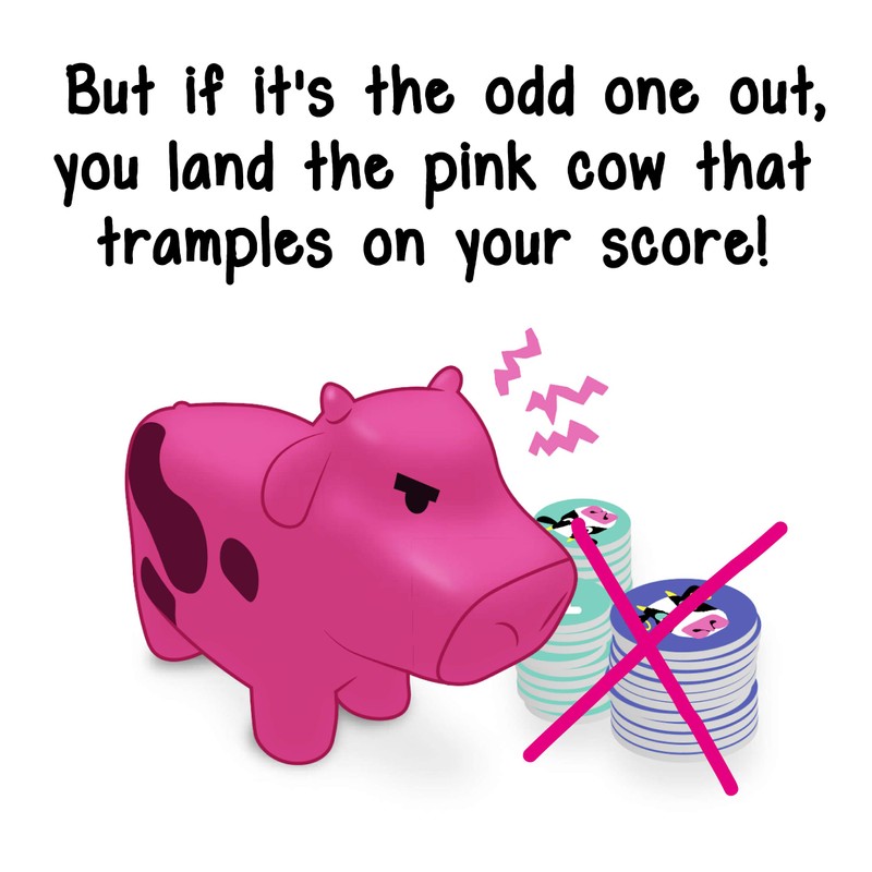 - LET CATTLE COMMENCE! If your answer is the odd one out, you'll be given the dreaded Pink Cow and you'll have no chance of winning... until you can moo-ve it on to someone else.