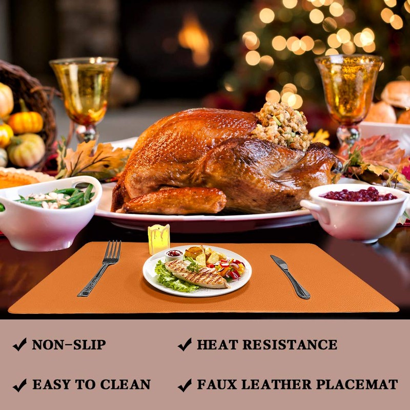 - 🍕【Heat Resistant strong】Our table placemats heat resistant canafford is close to temperature to 275℉(135℃) ,black leather placemats will protect table from warm plates, please don't put the hot plate in the leather table placemats directly which's taking out of the oven, let's place on a rack and a little cooling.