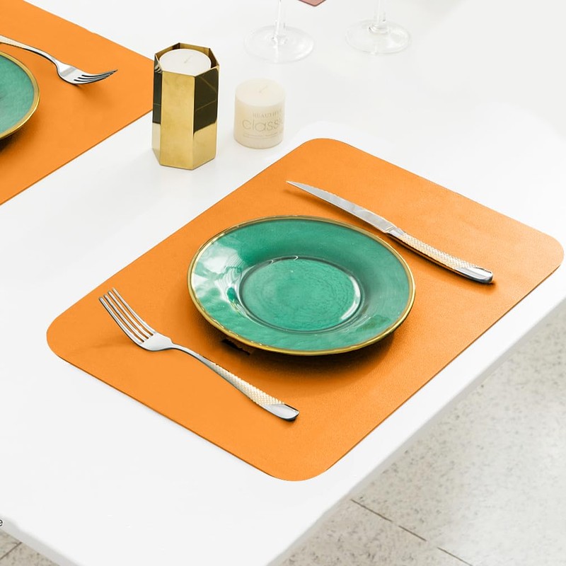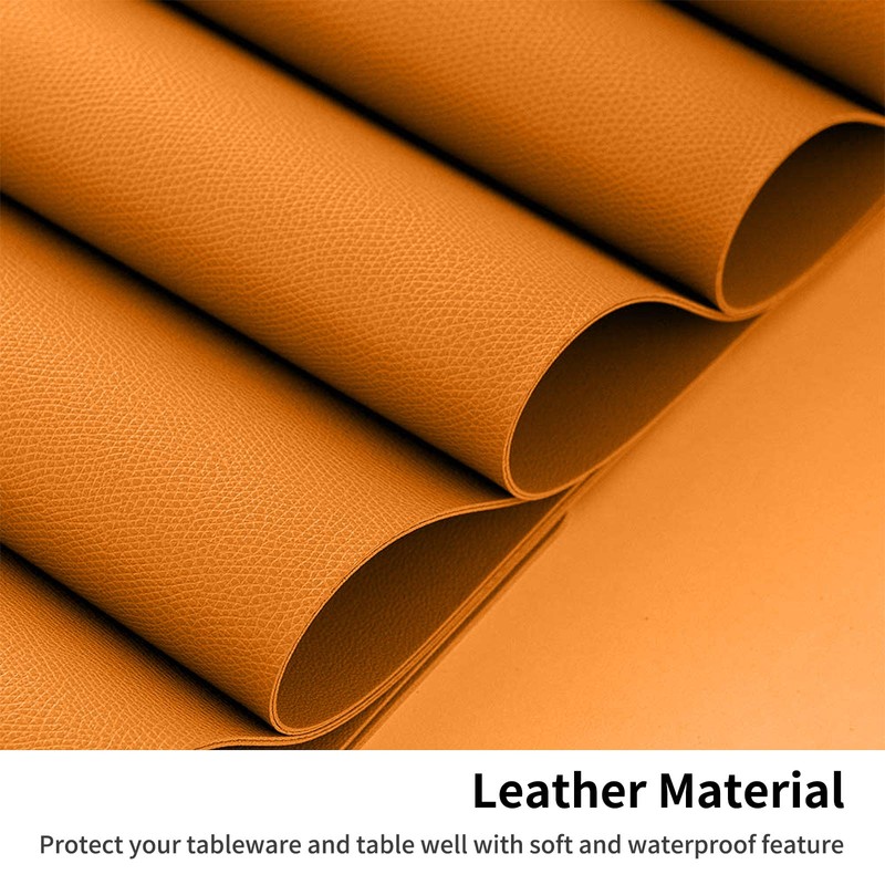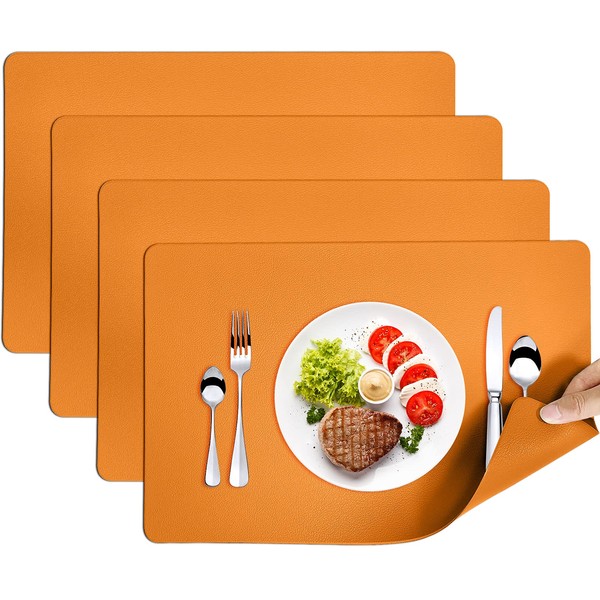 Herda Orange Faux Leather Fall Placemats,4 Set PU Leather Dining Mats Fall Non-Slip Waterproof Placemats, Indoor Wipeable Washable Thick Table Mats, Heat Resistant Table Mats Set of 4 Thanksgiving…