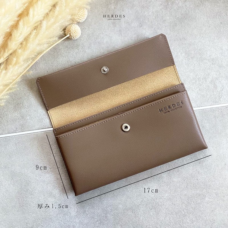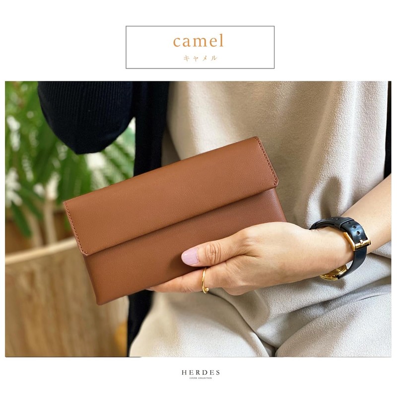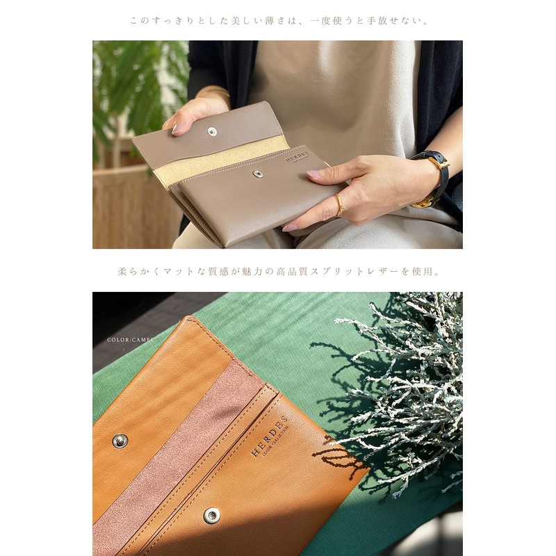 HERDES Women's Long Wallet, Brand, Large Capacity, Easy to Use, Lightweight, Thin, Slim, Cowhide Leather, Men's, Cover 0.6 inches (15 mm), camel/camel