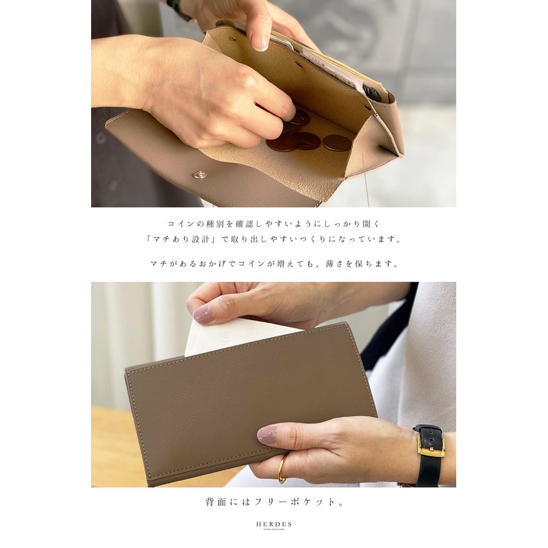 - Vertical card pocket for easy insertion and removal of cards. The pockets are larger than the size of the card can be stacked to store about 5 cards. The coin storage space is made with a "gusset design" that opens securely so that you can check the type of coin for easy access. Gusseted gusset keeps it thinner as more coins