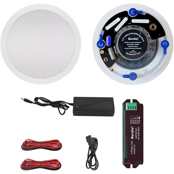 The Herdio HCS-818BT In-Ceiling Speaker delivers effortless superior sound to your patio, kitchen,bathroom,dining room,gym or office. This combination provides the utmost flexibility in terms of configuration and suitability to different types of audio tastes. They are made of Ecologically friendly ABS material and include changeable grills. Mount them in a convenient location on the wall or ceiling for a flush, clean look.