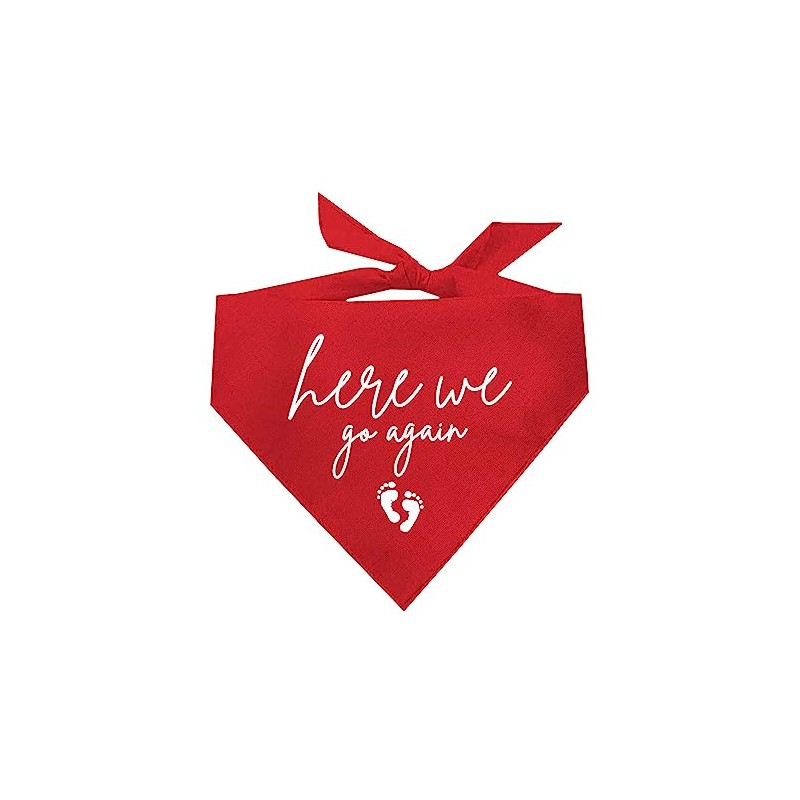 Here We Go Again Baby Announcement Dog Bandana (Red, OS 581)