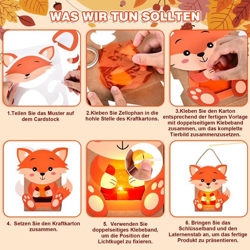 - Pack of 5 animal lanterns kit: this lantern craft set includes the accessories for 5 animal lanterns. Cute motifs such as raccoon, lgel, owl, fox and squirrel directly spread a cosy autumn mood. Each lantern has a lantern rod to make your lantern even cuter and more colourful
