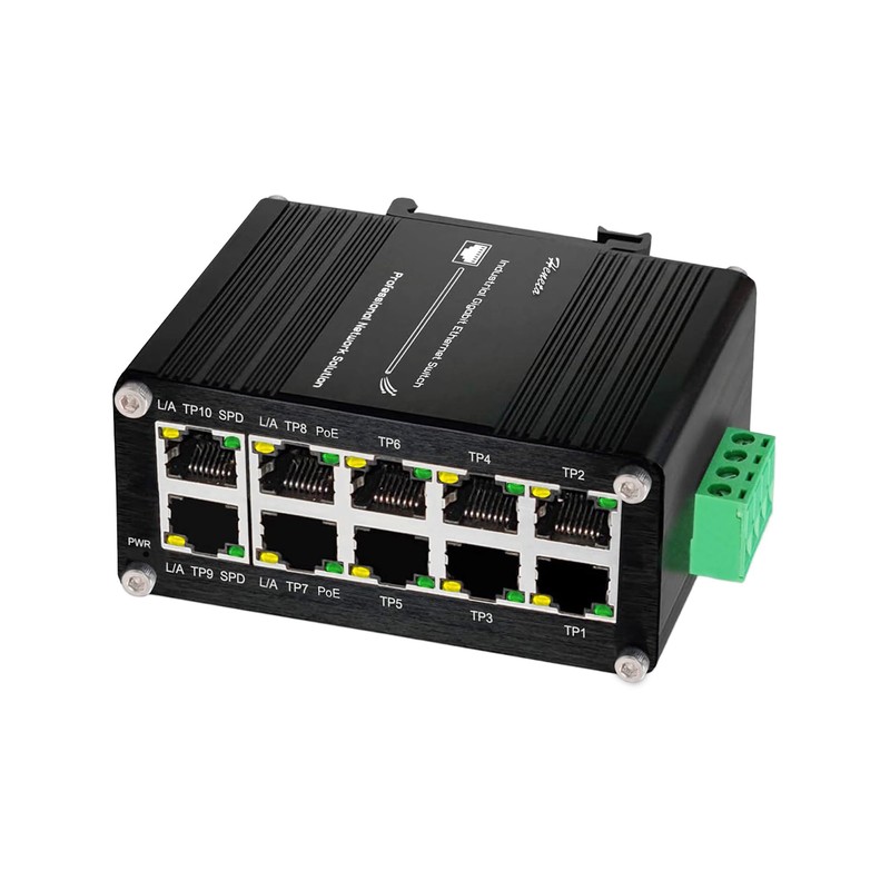 - 【Interfaces】Gigabit Network Industrial 10 Ports Switch with 8 x 10/100/1000BASE-T ports (IEEE 802.3at PoE+) and 2 Extra 10/100/1000BASE-T RJ45 copper interface (for uplink connection) supporting 802.3x Flow control,Full/Half Duplex mode,and Auto MDI/MDI-X functionality.