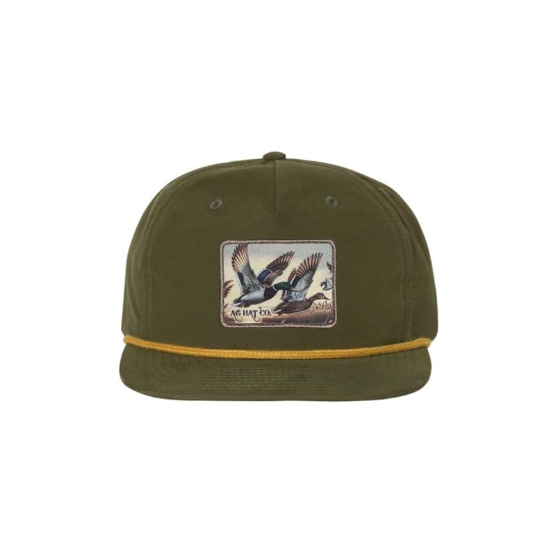 Heritage Pride AG Hat Co. Mens Patch Hat Flying Mallard Duck Embroidered Patch Rope Trucker Snapback Hat, Loden/Amber Rope