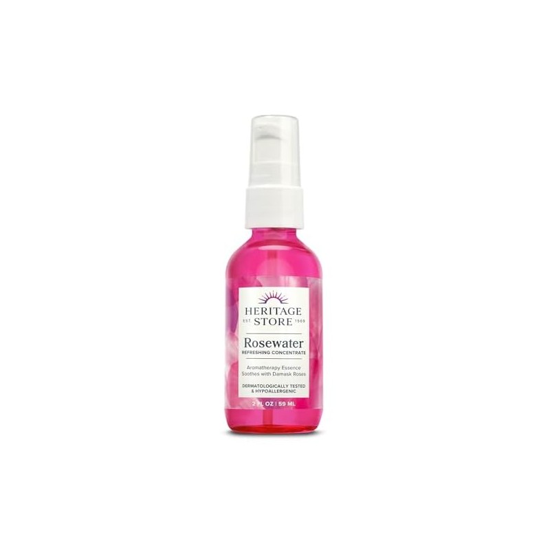 HERITAGE STORE Rosewater Concentrate - Aromatherapy Essence w/Damask Rose - Add Water for a Hydrating Face Mist or Blend Into Unscented Beauty Products - Hypoallergenic, Vegan, 60-Day Guarantee, 2oz
