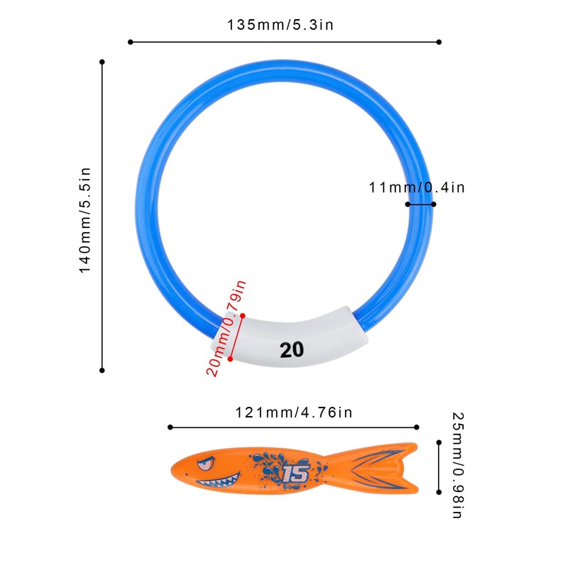- Interesting design: the edges of the diving ring and plastic diving torpedo are smooth and burr-free and carefully designed to make them easy to hold. The diving ring is designed to stand upright on the pool floor.