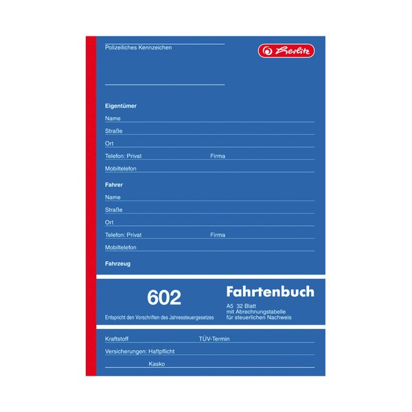 Herlitz 840637 Driver’s Logbook A5 602 32 Sheets