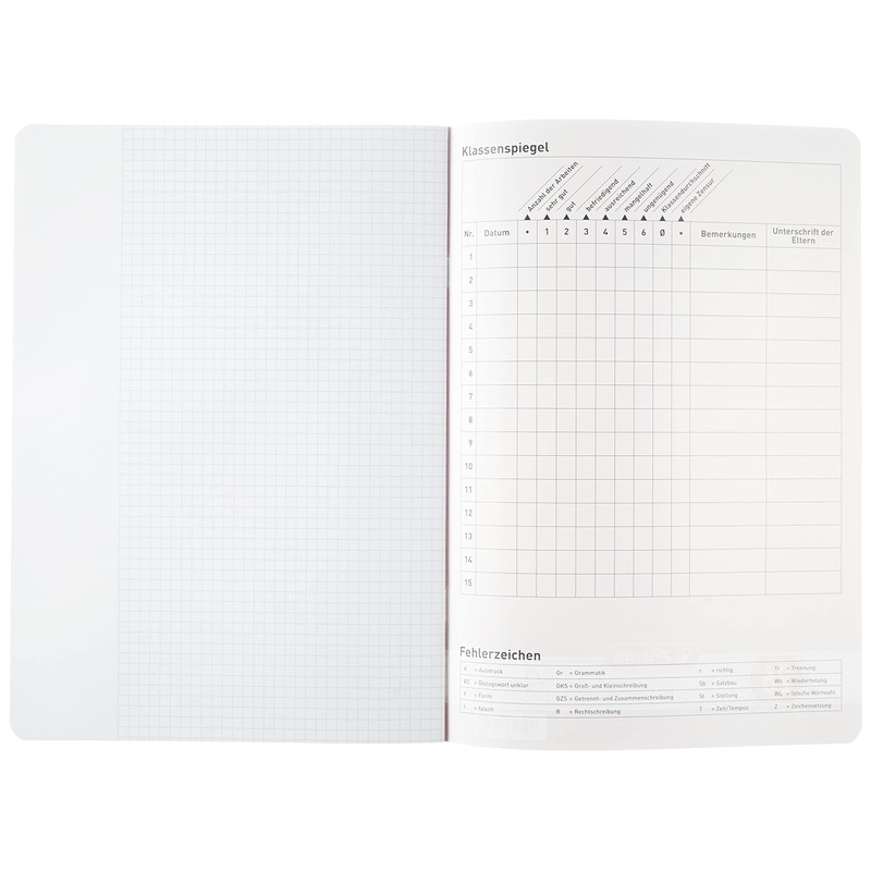 Schulheft. Ausführung Papier: holzfreies Papier, FSC Mixed, CO2 reduziert, 80 g/m². Ausstattung: ohne Lochung, geklammert. Runde Ecken, Extra starker Kartonumschlag. Papierformat: A4. Lineatur/Lineatur-Nr.: kariert mit Rand, 26. Anzahl der Blätter: 16 Blatt. Farbe des Einbandes: 8 Motive.