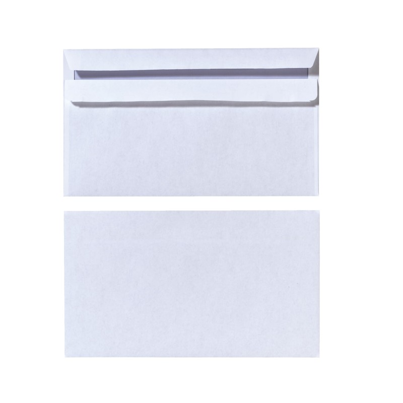 Briefumschlag DL. holzfreies Papier, 75g/m². 22 x 11 cm. Selbstklebend. Ohne Fenster. Weiß. 100er Packung, eingeschWeißt.