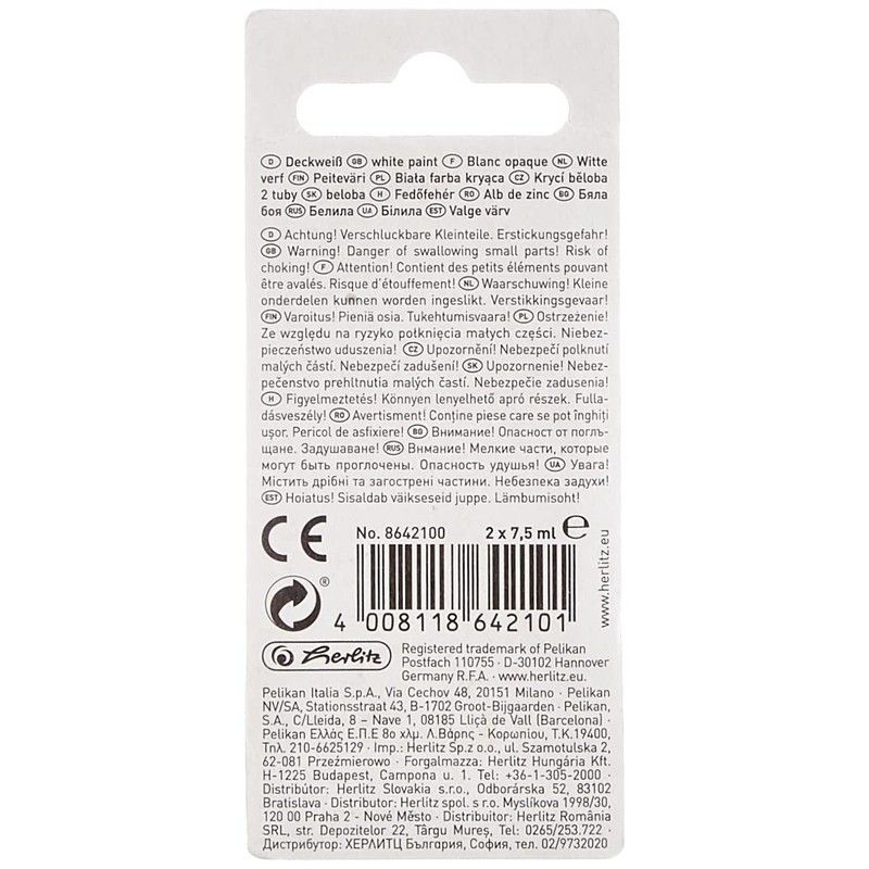 Herlitz opaque white, 2 tubes of 7.5 ml.