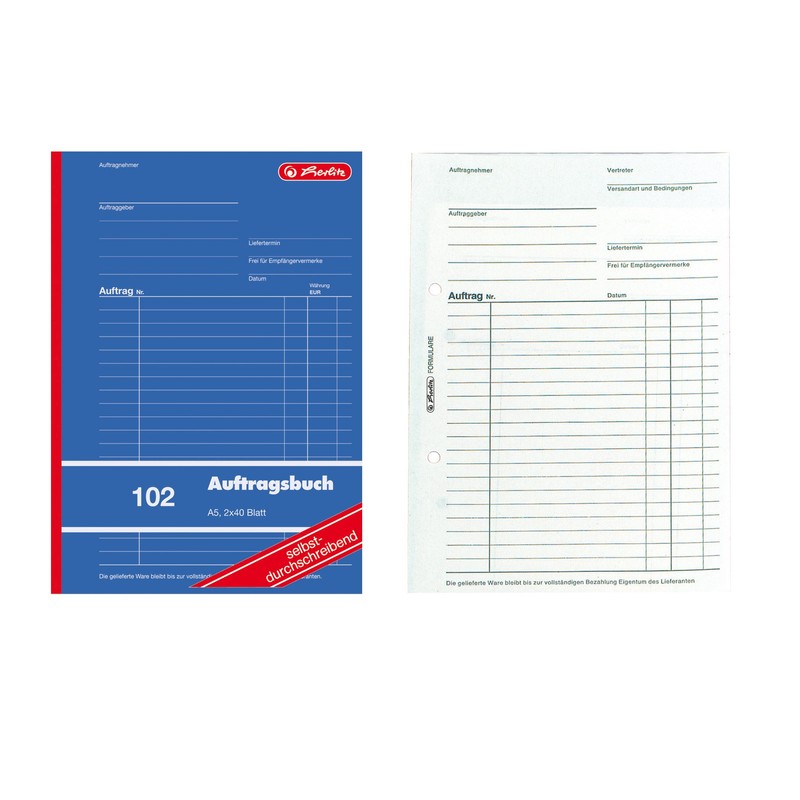 Herlitz Order Book A5 2 x 40 Sheets Self-Copying Professional Size – Pack Of 1