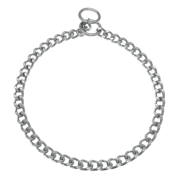 - Strength and Style: This choke style chain collar has narrow flat polished links and is suitable for dogs with short hair; Welded connection of the links offers strength and durability; Robust and heavy 4 mm chain is appropriate for dogs with strong necks