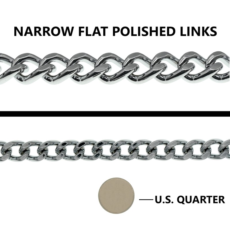 - Design: High gloss finish of chrome plating offers distinctive and attractive bright look; With the flat polished links this chain maintains a contemporary appearance