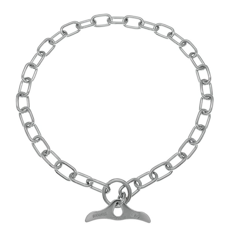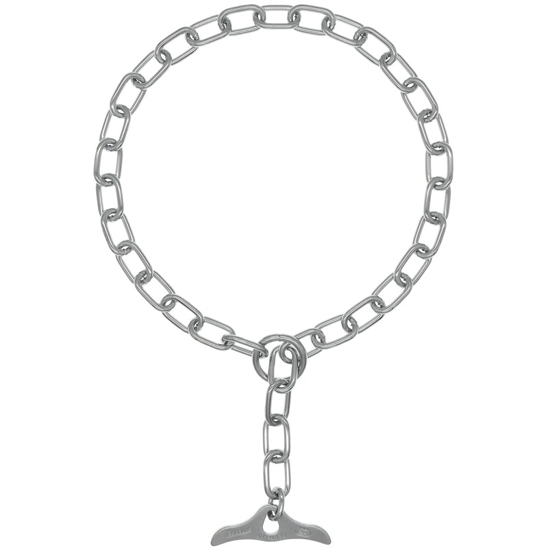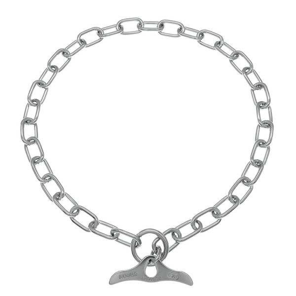 - Herm Sprenger Chrome Plated Steel Slip Chain with Toggle: Designed for dogs with neck size of Up To 18 inches (45 cm); Wire gauge 3.4 mm; Overall collar length is 20 inches (50 cm)