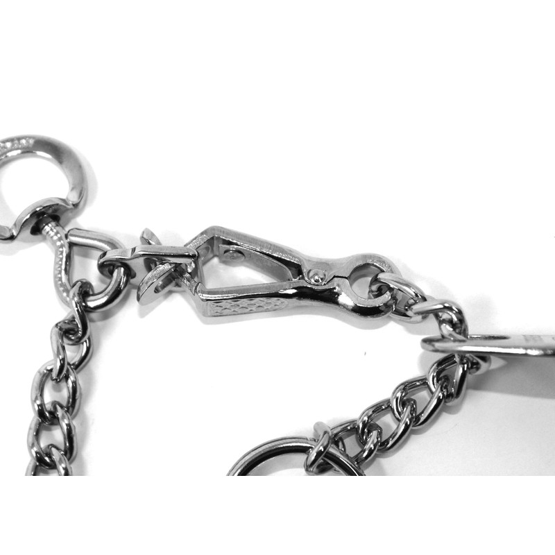 - Chrome Plated Steel Prong Collar with Quick Release Snap: This model comes with a quick release buckle which makes putting collar on and removing it a breeze; Overall collar length is 16 inches (41 cm) by 2.25 mm wire gauge; Designed for dogs with neck size up to 13 inches