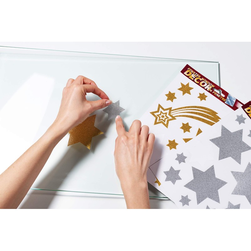 HERMA 45 Christmas Silver Star Stickers for Windows with Glitter Effect, Reusable Xmas Decorations, Large Wall Decals Window Clings for Kids and Children