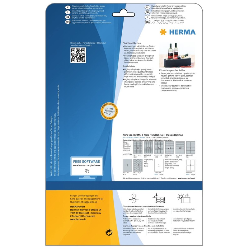 - Box contents: 40 x HERMA bottle labels, DIN A4 format, 9 x 12 cm, rectangular, white (10 sheets of 4 labels)