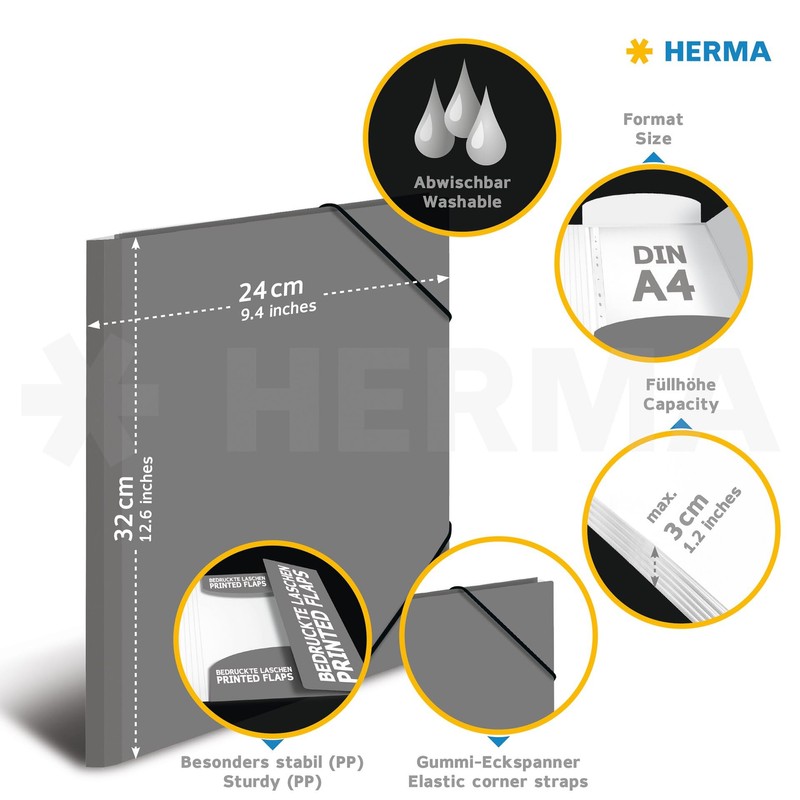 - High quality 3 flap folder is made of polypropylen for A4 formats (210 x 297 mm)