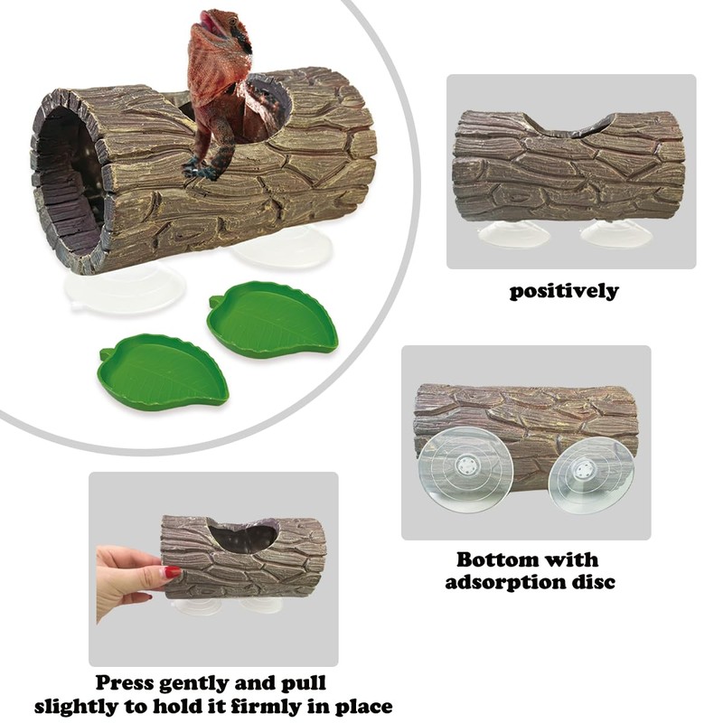 • Hiding Cave: Our Resin Hollow Tree Trunk Hideout features a hollowed-out design that allows small animals such as hermit crabs, bearded dragons, leopard geckos, small reptiles and reptiles, which have a natural tendency to hide, to crawl, breed, scoot, perch, and hide inside, reducing their sense of stress, and allowing your beloved pets to happily play and thrive inside