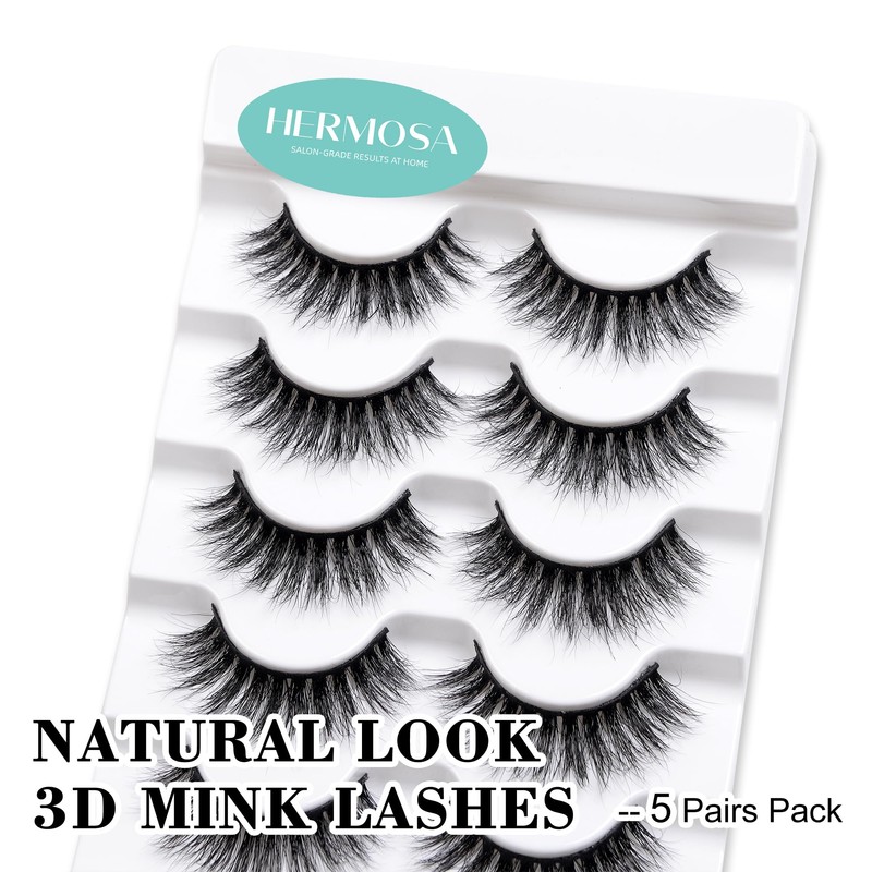 Hermosa Manhattan 3D Mink Eyelashes, 33mm, Doll Shape, Black Cotton Band, 5 Pairs Multipack HM3D05