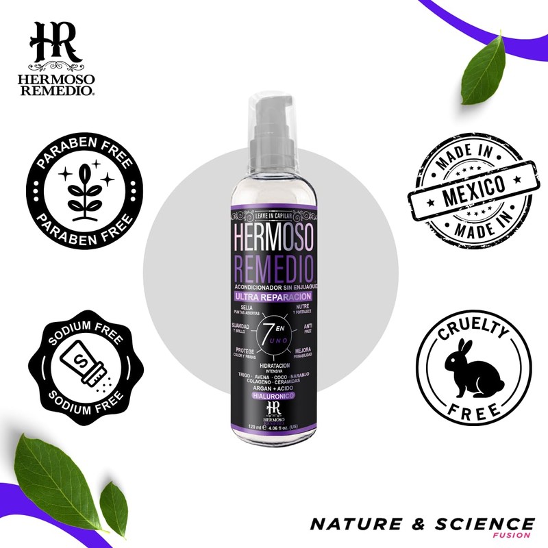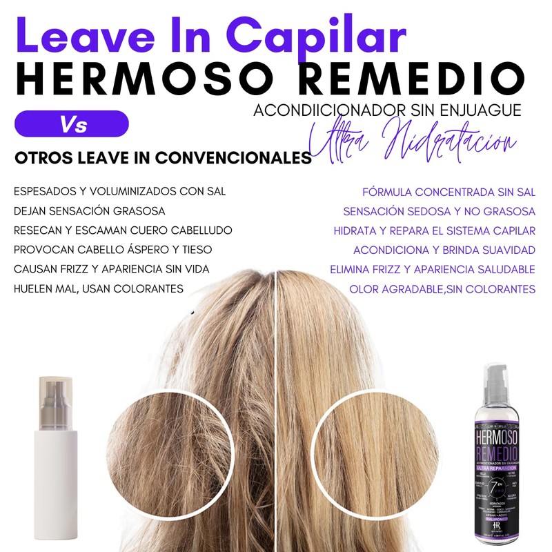 Hermoso Remedio - Leave In Capilar Acondicionador Sin Enjuague - Sin Sulfatos y Parabenos - Tratamiento para Cabello Maltratado Dañado Procesado - Sin Sal y Siliconas -120ml