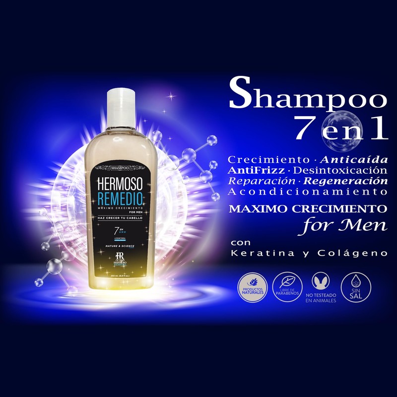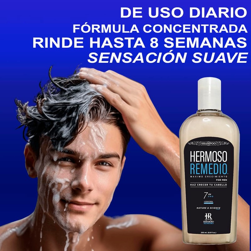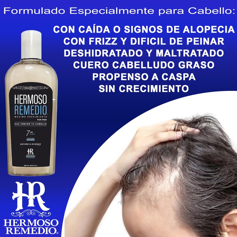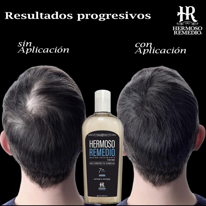 Hermoso Remedio - Shampoo Crecimiento Anticaída Anticaspa Reparación Regeneración Capilar Hombre - Combate Alopecia Pérdida de Cabello - Sin Sal y Parabenos - Biotina Queratina Colágeno - 250 ml