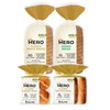 Save over 5% on each loaf or pack in your Find Your Hero Bundle. Are you new to Hero and eager to explore all of our fluffy, delicious and ultra-low net carb baked goods? The Find Your Hero bundle is here to help, offering an assortment of 0-1g net carb breads. It includes one loaf of Classic White Bread for whipping up comfort food staples like grilled cheeses and french toast; one loaf of Seeded Bread baked with pumpkin seeds, sunflower seeds and flax seeds to ensure an artisanal feel with each flavor-filled bite; one pack of four Burger Buns to experience how they hold both breakfast sandwiches and protein-packed patties; and one pack of four Hot Dog Buns to layer with brats or get creative crafting mini po-boys or garlic bread sticks.The delicious baked goods in this bundle are now made with heart-healthy olive oil. Plus, our new Burger and Hot Dog Buns recipe boasts an extra gram of protein and fiber. 0-1g Net Carbs*0g SugarHigh Fiber5-11g Protein<100 calories100% plant-basedMade with natural ingredientsContains one 15.9oz loaf of Hero Classic White Sliced Bread, one 19.5oz loaf of Hero Seeded Bread, one 8.7oz 4-pack of Hero Classic Burger Buns, and one 8.7oz 4-pack of Hero Classic Hot Dog Buns.Enjoy within seven days of receiving or freeze for up to four months. Allow to reach room temperature before eating for the fresh, fluffy taste you expect from Hero Bread. *All figures listed per serving