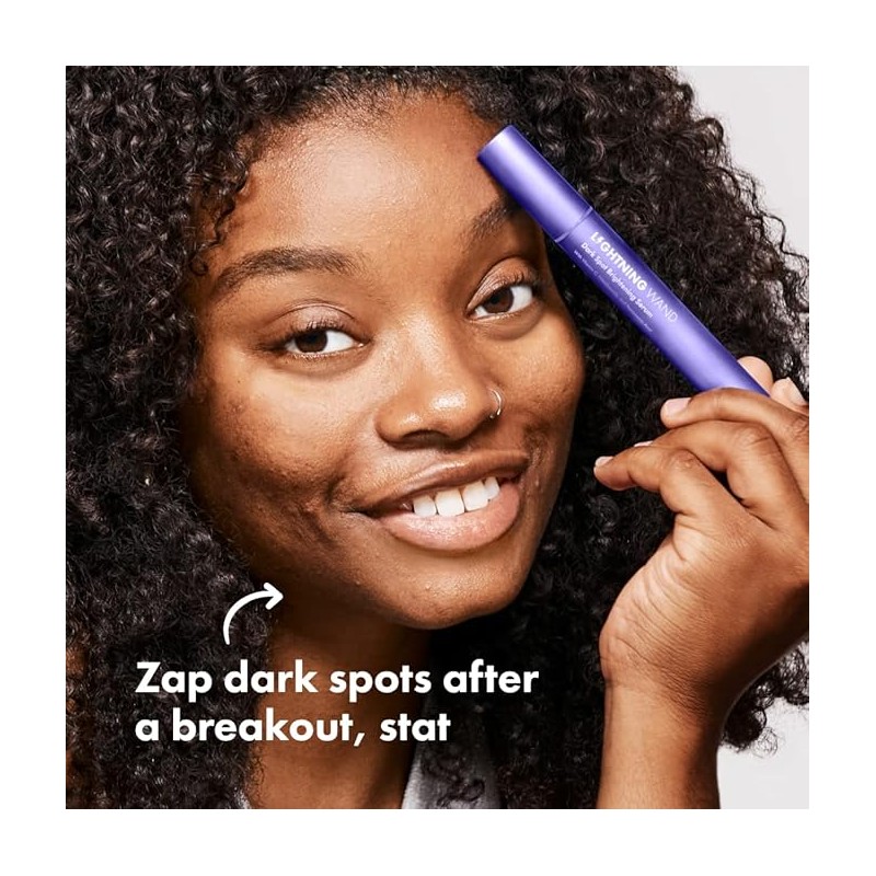 - Skin brightener for face or body – Visibly improve post-acne marks with Lightning Wand, a brightening and illuminating serum. Start Lightning Wand as soon as you’ve extracted a blemish, 1-2 times per day until the dark spot looks better.