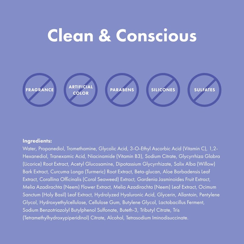 - Gentle enough for everyday brightening – Safe for all skin types, including sensitive skin. No hydroquinone, no phthalates, no artificial color, no fragrance, and no testing on animals.