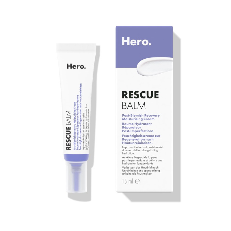 - Post-Blemish Recovery Moisturising Cream: Bounce back from dry skin with the moisturising Rescue Balm; great for use after treating a pimple with Hero Mighty Patch pimple patches