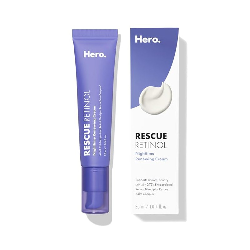 Hero Cosmetics Rescue Retinol Nighttime Renewing Cream - Helps With the Look of Uneven Texture and Post-Blemish Marks - Gentle, Non-Drying Formula, Introduction Retinol - Safe for Sensitive Skin (30 ml)