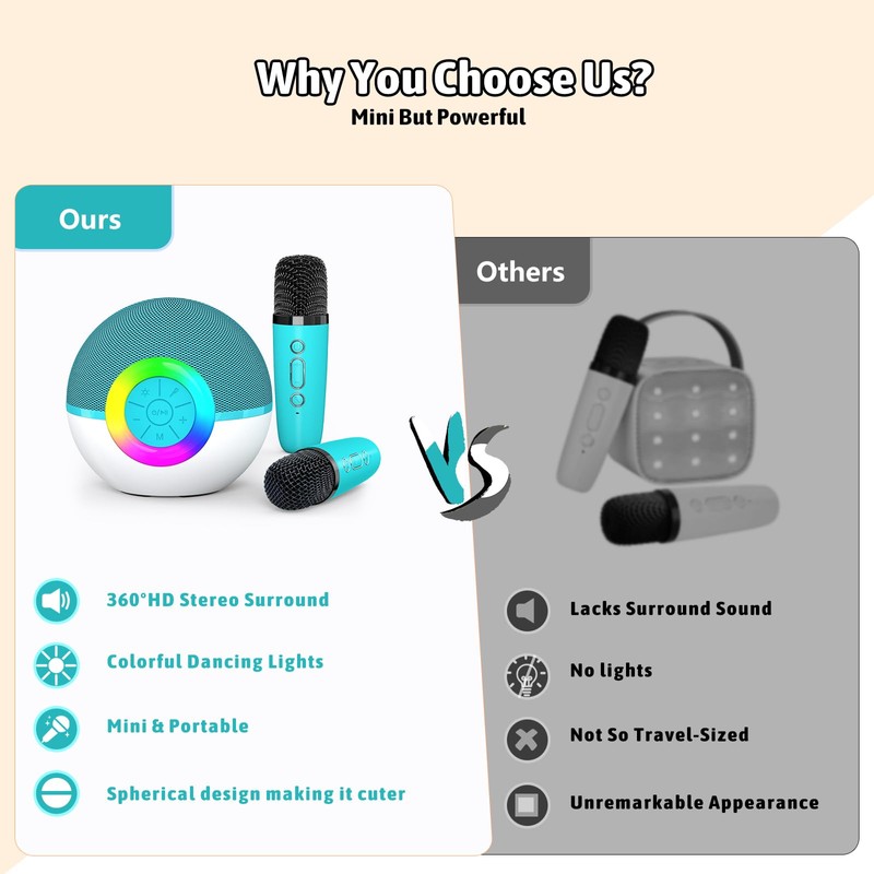 - Amazing Audio Quality: This mini karaoke machine delivers crystal-clear sound that will make you feel like you're on stage! High-performance audio eliminates annoying feedback and ensures your voice sounds its best. Plus, separate controls for vocals, echo, and volume let you fine-tune your sound for the perfect performance. Whether you're belting out your favorite tunes for karaoke night or using it as a portable speaker, this karaoke machine for kids is sure to impress