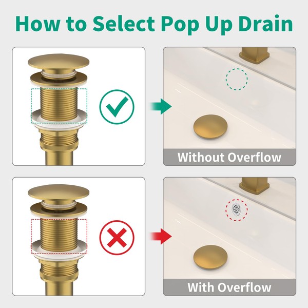 - 【Standard Size Drain】: This bathroom sink drain is suitable for the sink without overflow. Please confirm whether it matches the sink in your home before purchasing. Suitable for sink hole with diameter of 1.6 inches to 1.9 inches and fits drain pipe with a diameter of 1.25 inches or 1.5 inches. And the maximum thickness of basin is 1.97 inches. Most bathroom sinks and standard size water pipes can match our drain.