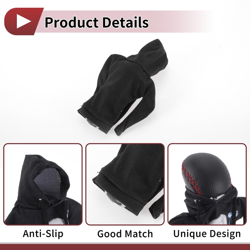 HEROFFIX 1 Pc Gear Shift Knob Cover Decoration Stick Shifting Handle Protector 16x10.5cm/6.3"x4.13" Black,White,Light Blue Skeleton Hoodie Style Polyester