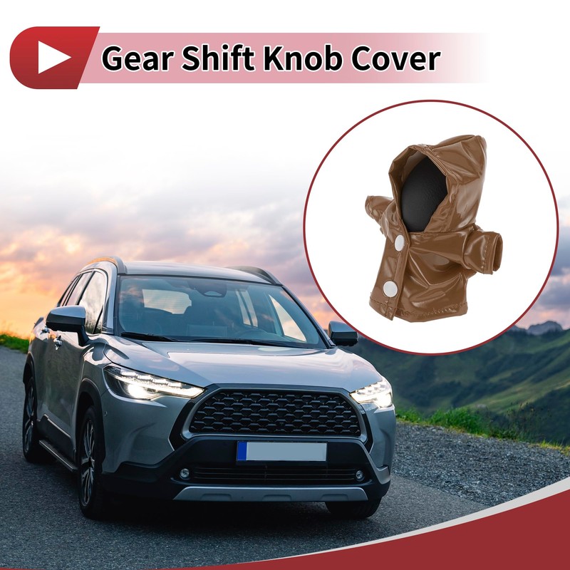 HEROFFIX 1 Pc Gear Shift Knob Cover Stick Shifting Handle Protector Hoodie Style Brown Faux Leather