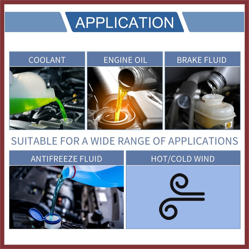 - Detail: [Application] Applies to Coolant, Engine Oil, Brake Fluid, Antifreeze Fluid, Hot/Cold Wind, etc.