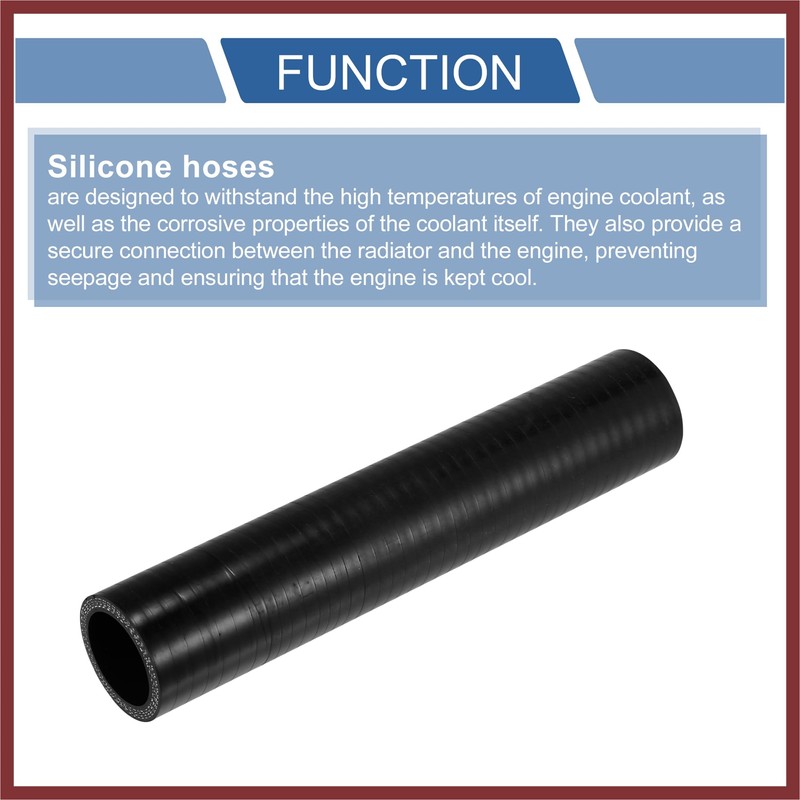 - Item: [Function] Silicone hoses are designed to withstand the high temperatures of engine coolant, as well as the corrosive properties of the coolant itself. They also provide a secure connection between the radiator and the engine, preventing seepage and ensuring that the engine is kept cool.