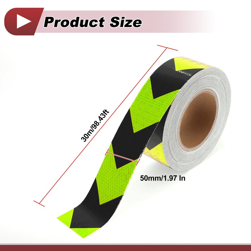 HEROFFIX 1 Pcs Safety Warning Reflective Tape Increased Visibility Reflective Strips 98.43ftx1.97" Green,Black PVC