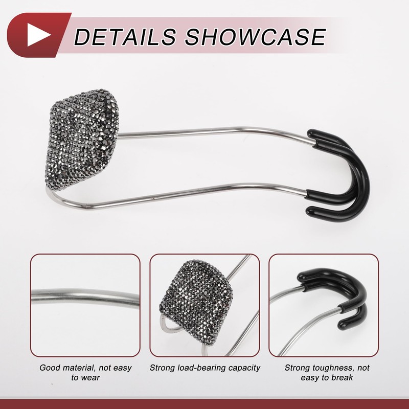 HEROFFIX 2 Pcs for Purses and Bags, Umbrella Etc Car Seat Headrest Hook Sturdy Car Seat Back Organizer Hooks Gloss Black Rhinestones 6.14"x1.81"