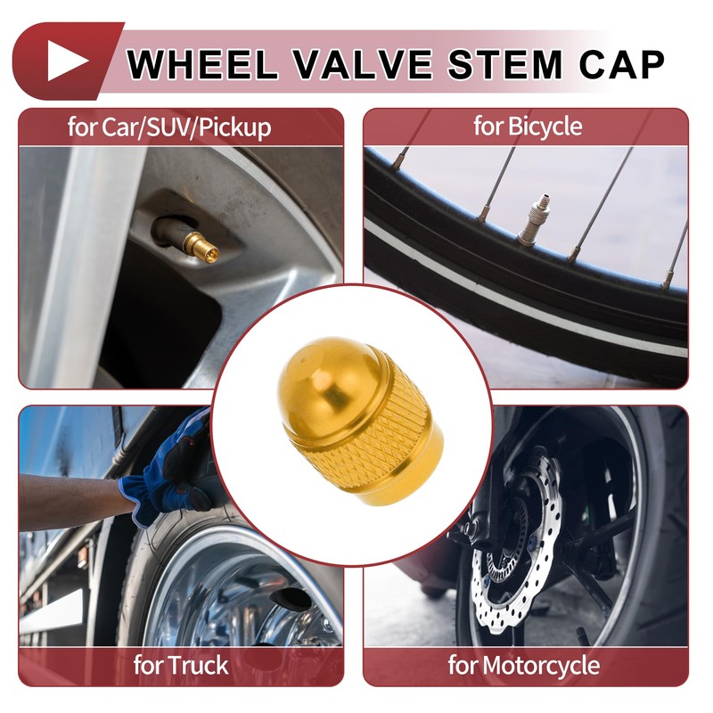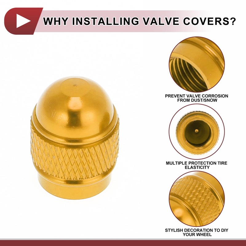 Tire valve dust caps adopt with durable leakproof Aluminum Alloy material, wear resistant, anti crash/rust, moisture resistance. Great help to protect the valve stem threads.