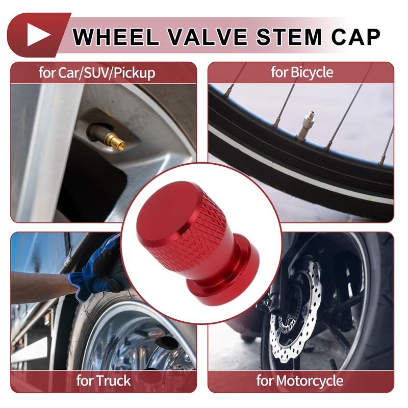 - Material:Tire valve dust caps adopt with durable leakproof Aluminum Alloy material, wear resistant, anti crash/rust, moisture resistance. Great help to protect the valve stem threads. Built in rubber o-ring to firmly fix on tyre valve caps, provide multiple protection to ensure the safe of driving/cycling.