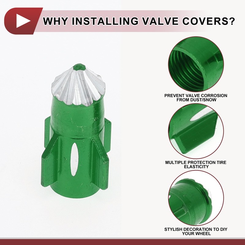 HEROFFIX 4 Pcs Pointed Head Rocket Shape Tire Valve Stem Caps Decorative Tyre Valve Dust Covers 7x27mm Green Aluminum Alloy